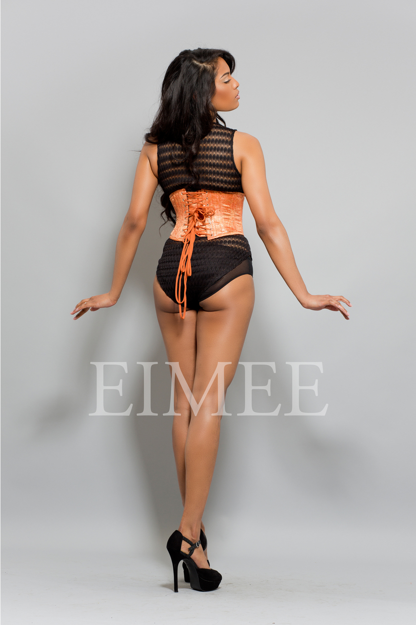 Crafted from multi layer brocade, Eimee's figure-forming corset is fully boned to sculpt a sensational silhouette. This classic underbust features steel bones, front busk and back lacing maintains its shape all you have to do is adjust the laced back to ensure this piece fits like a glove.